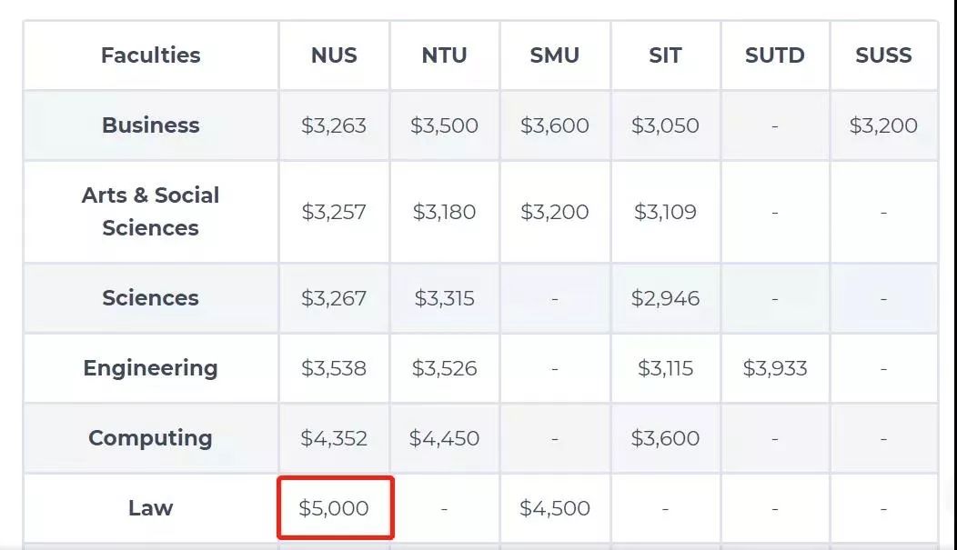 法律专业中,也是新加坡国立大学(NUS)毕业生的起薪最高,他们的起薪是5,000新币(25,725人民币)。