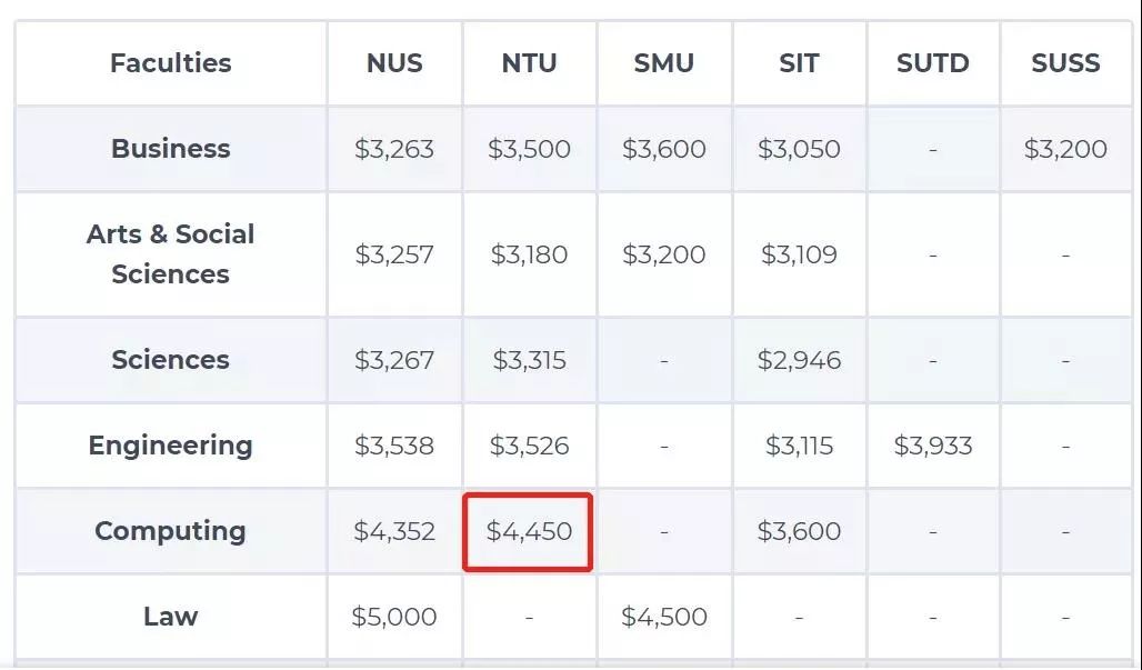 计算机专业中,也是南洋理工大学(NTU)毕业生的起薪最高,他们的起薪是4,450新币(22,895人民币)。