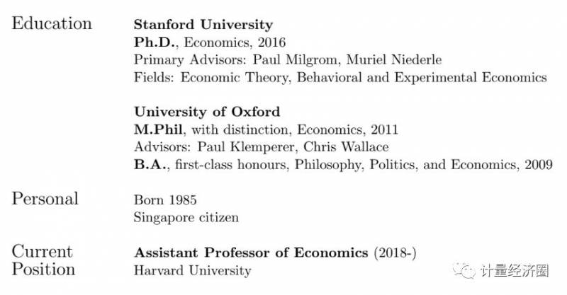 2018年10月,Shengwu因发表在《美国经济评论》上的论文“Obviously Strategy-Proof Mechanisms”获得了梦寐以求的Exeter经济学理论论文奖。
