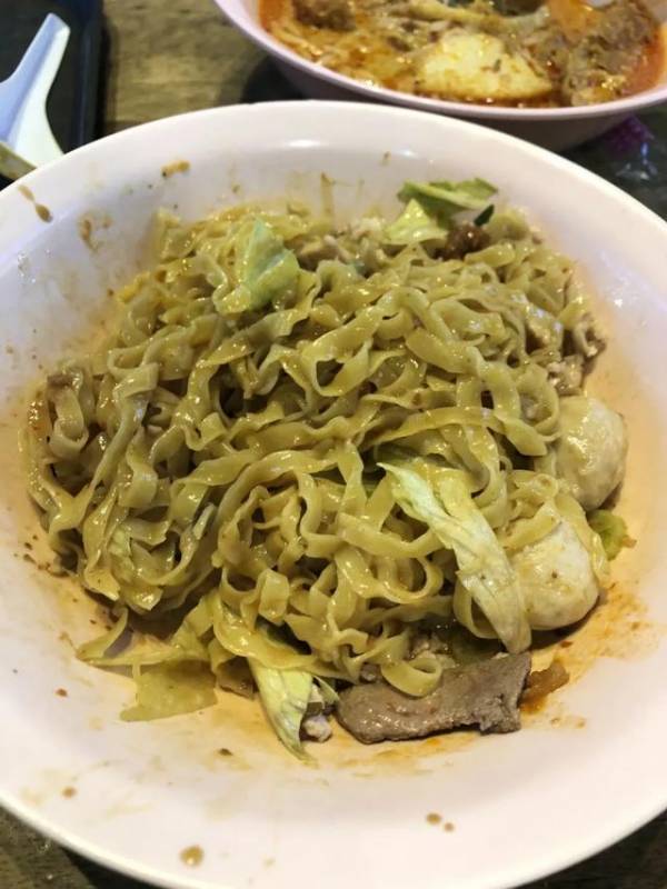 肉脞面的“面”有多种选择,粿条、面线、米粉等,但我最喜欢的是面薄(Mee Pok)。面薄就是压得扁平的鸡蛋面,吃起来硬硬的,劲道,吸附汤汁的同时绝不会泡得绵软。