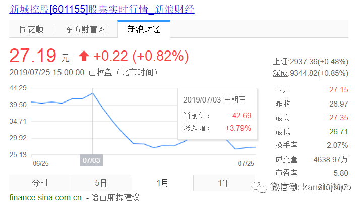 事发后,新城控股的股价在“黑天鹅”事件中疯狂跳水,从事发前42.69人民币的收盘价,跌到了今天的27.19人民币,市值蒸发了近4成!雪崩得一塌糊涂。
