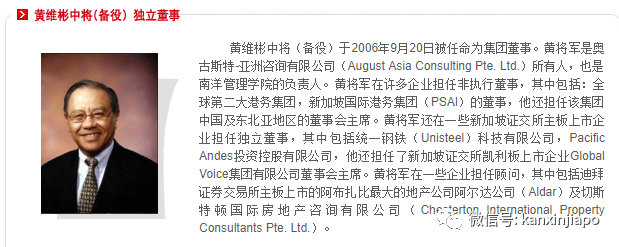 仁恒集团董事局里的独立董事黄维彬中将,曾任新加坡三军总长。