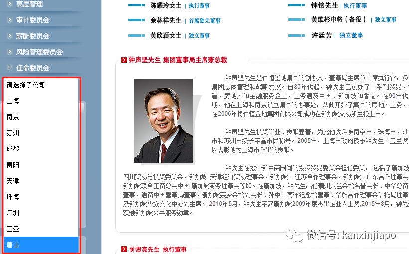仁恒置地是间新加坡公司,董事长钟声坚是福布斯新加坡榜排名前20的富豪,身价17亿新币!