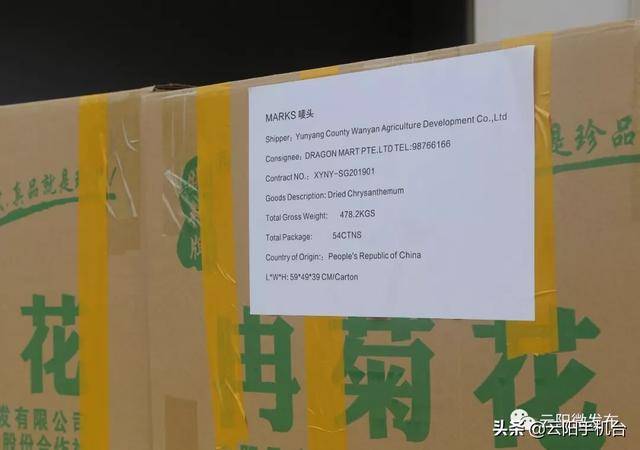 去年12月,云阳县晚艳农业开发有限公司与新加坡兴龙国货公司签订购销合同。1月14日,云阳县晚艳农业开发有限公司在堰坪镇高新村举行发货仪式,首批云阳“冉菊花”正式发往新加坡 !