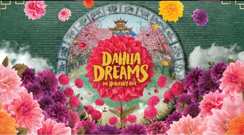 这项万紫千红的花卉展主题紧扣农历新年,以迷人花卉展现中华传统文化中关于十二生肖的传说。在花穹精致的绿植和传统花亭中穿梭,沉浸在令人难忘的视觉盛宴中。