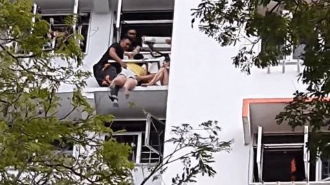 太惊险了!新加坡一名妇女组屋外墙上演“蜘蛛侠”