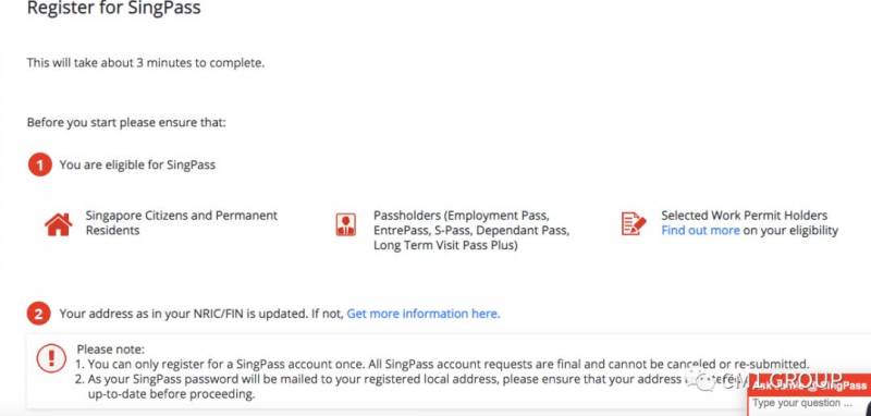 1. 使用网上注册(SingPass账户密码将在四个工作日内邮寄到指定地址)