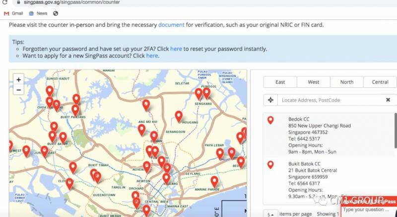 2. 前往最近的SingPass柜台所在地(立刻签发SingPass) :