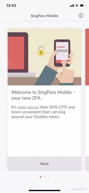 传统新加坡政府双重认证(2FA)登入方式。输入自己设置的固定密码后再输入通过密码生成器或手机简讯收到的一次性密码(OTP),使用手机APP可以省去这个麻烦。