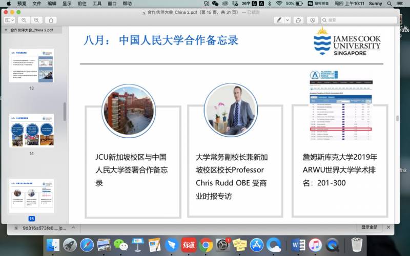 校领导提到JCU是世界前2%的大学 第一个取得中留服认证的新加坡私立大学 也是新加坡唯一能叫作“大学”的私校