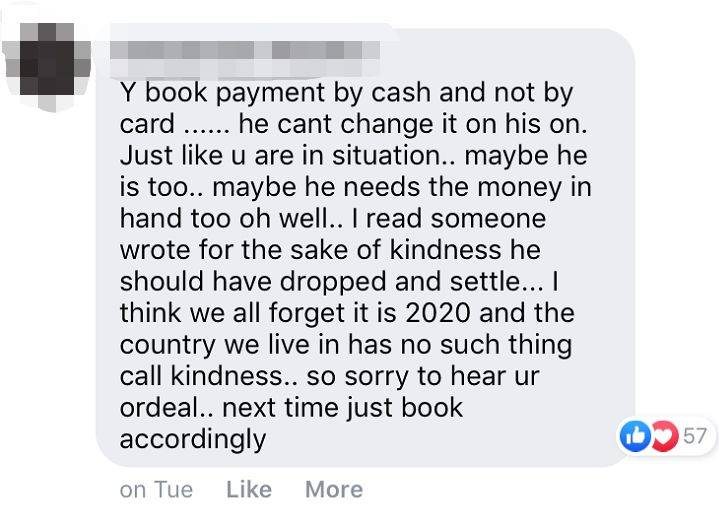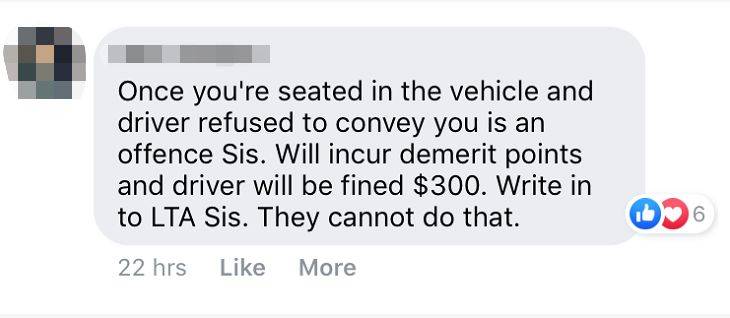 “可是你居然因为她想要用NETS付款,叫她不要搭你的车!”