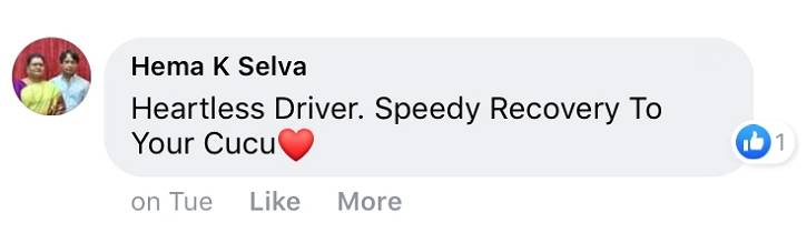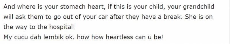“你的良心在哪里?如果这是你的孩子,你的孙子,你会让生病的他们不要坐你的车吗?(我的女儿)是要去医院!我的Cucu是如此的虚弱,你怎么能如此无情!”