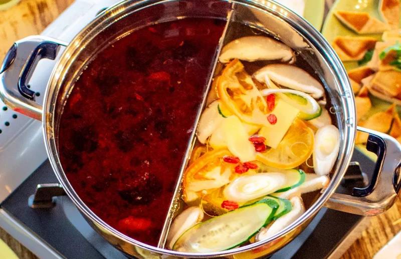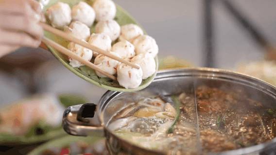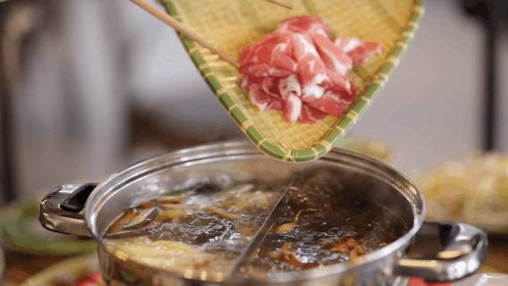 汤底煮沸后,把肉一股脑儿的涮入锅中