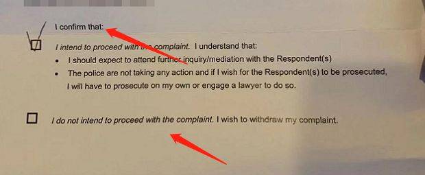 此时,会收到一封信,会让你选择继续追究还是不追究结案,这个信很关键,由于有日期限制,所以在收到信后如果决定追究,要签字和以传真/Email/邮寄的方式给信中法庭地址以明确的答复,过期视作自己放弃追究权力。
