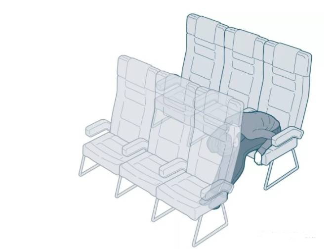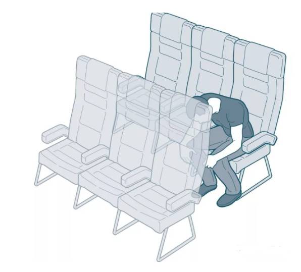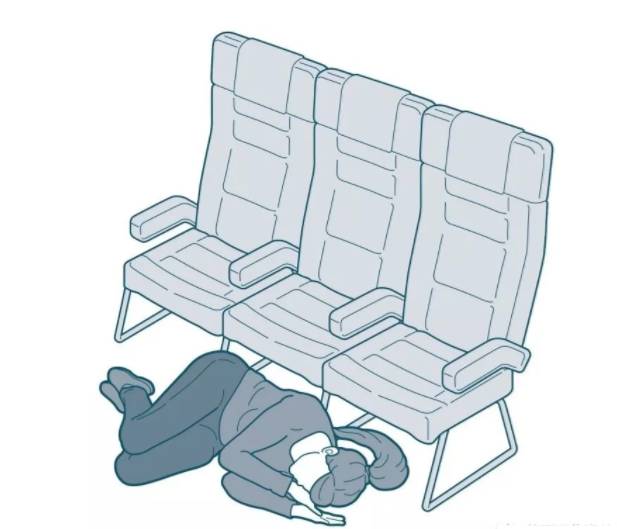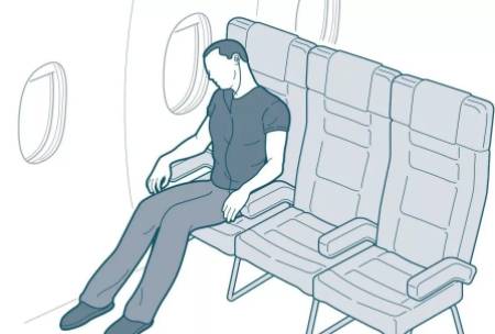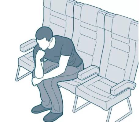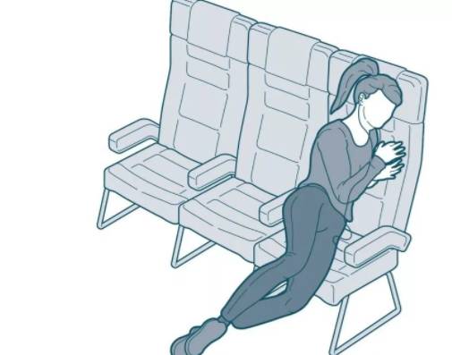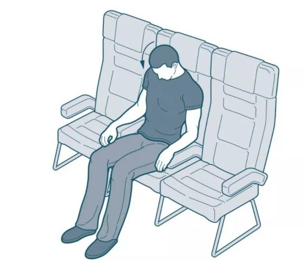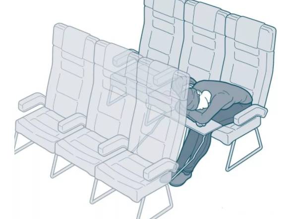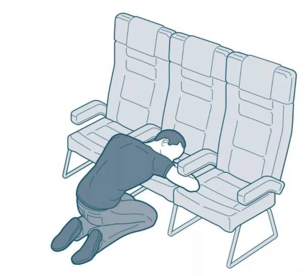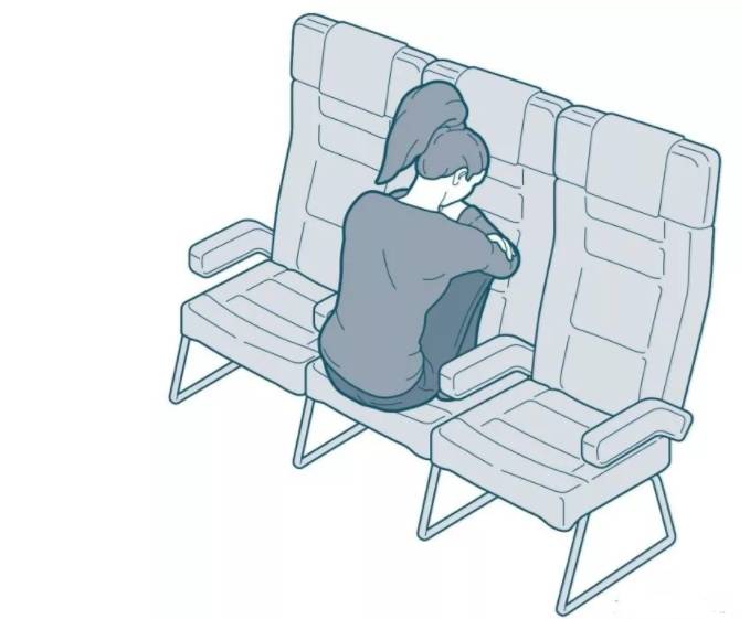 系好安全带,将身体对折,头放在膝盖上进行入睡。