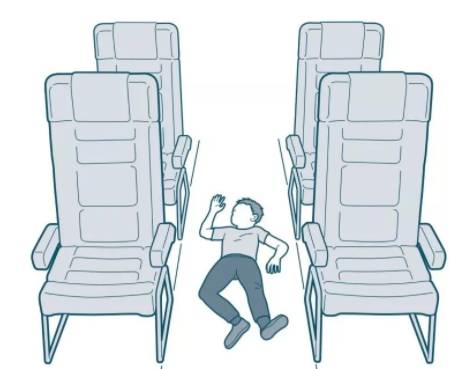 适合非常擅长与他人进行沟通或者与信任的旅伴一起旅行的旅客。你需要说服他们让你睡在椅子下面,比如尝试:哎呀,让我睡下面,那上面这一排座位都是你的啦~