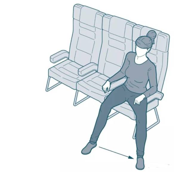 坐在座位上,将身体旋转到一侧,微微弯曲你的膝盖和腰部,以形成波浪形。