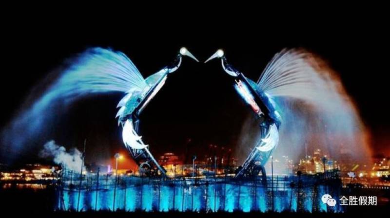 大型光影秀“时光之翼”,配上音乐喷泉,好帅~