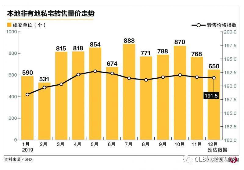 成交量方面,去年12月转售的私宅单位环比减少15.4%至650个,但仍比前年同期高出21.5%,也比过去五年的12月份平均值高出15.3%。上月易手的单位中,近半数是中央区以外的大众化私宅。