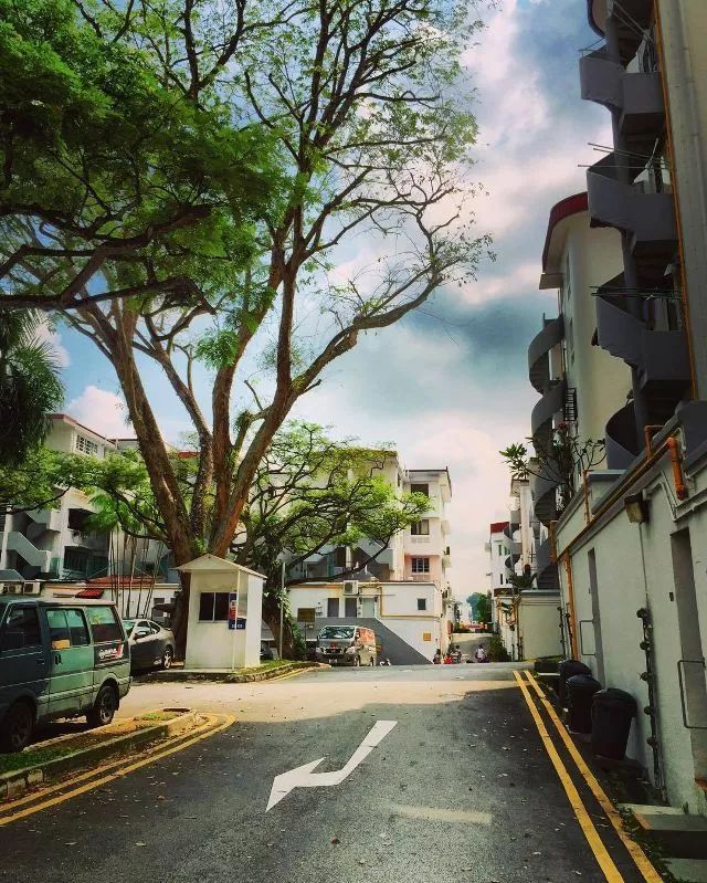 中峇鲁路两旁保留改良信托局在旧年代兴建的楼房。社区内保留的一些旧建筑却让人怀旧。一辆红色小车的存在,一下子联想到欧洲小镇。