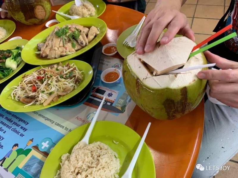 一筷子鸡肉蘸酱油,一口鸡油饭一口椰汁,