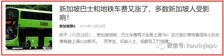 12月28日起,新加坡地铁、巴士车费再次全面上调7%。成年人的车费每趟上调0.09新币。