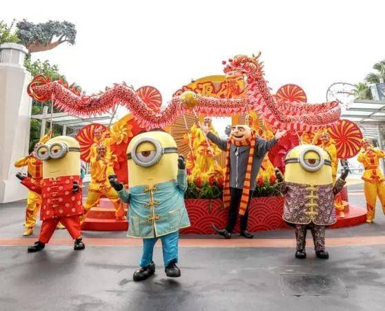 小黄人换上春节服饰萌翻天,新加坡圣淘沙名胜世界春节特别打造期间限定主题活动:鼠你精彩,现场将准备两场精彩绝伦的舞龙表演,新加坡环球影城还有春节限定的飞龙在天贺岁大游行,游客也能感受满满传统节气氛围。
