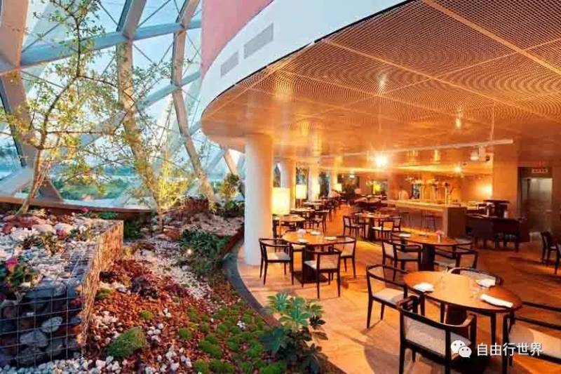 就在花穹的一层,可以俯瞰滨海湾的水面。现代欧洲西餐,评价不错。