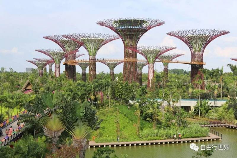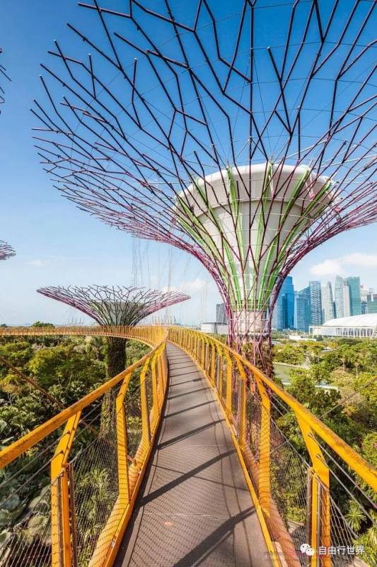 在两颗最大的超级树之间还架设有悬空步道,游客可以从高处俯瞰滨海湾花园。