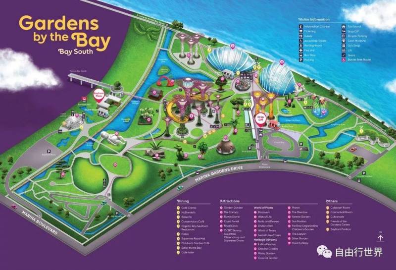 离滨海湾花园最近的地铁站叫Bayfront MRT,就在滨海湾金沙酒店和商场的下面。可以上午在酒店和商场逛逛,吃完午饭休息一会儿以后去滨海湾花园一直逛到晚上。新的地铁站滨海湾花园站正在建设中,2021年投入使用。
