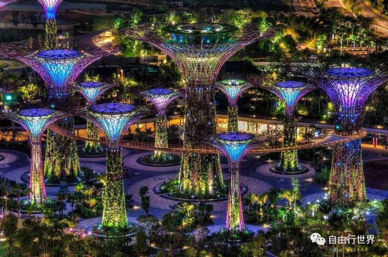如果你来到新加坡滨海湾Marina Bay地区,你肯定会对几个奇形怪状的设施感到好奇。在一大片热带丛林里,十几颗明显是人造的巨树耸立其中,旁边还一高一矮卧著两栋贝壳一般曲线圆滑的玻璃房子,看上去如同科幻片里的未来世界。这就是滨海湾花园Gardens By The Bay,是来新加坡旅行的必游之地。