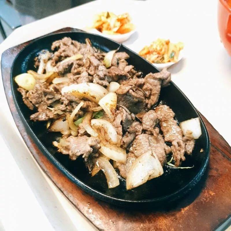 喜欢韩式的这家不错。铁板牛肉+泡菜汤,很多上班族喜欢点的套餐。铁板牛肉里的洋葱虽然是配料,不过很重要。他们家用的是日本的,甜脆!
