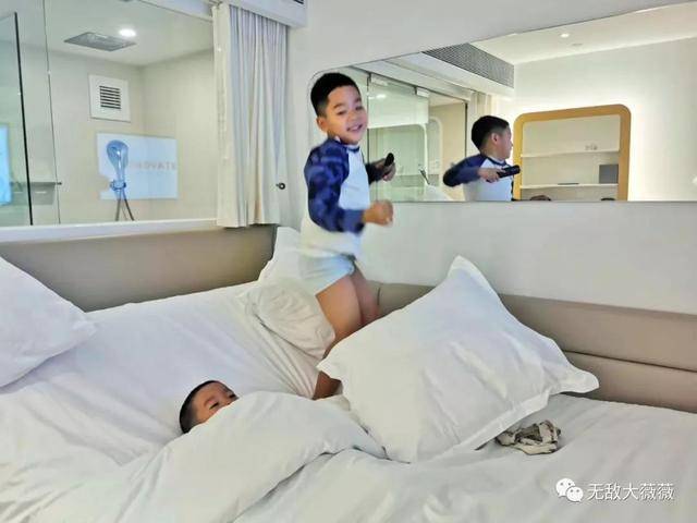 结果俩小孩一进来就高兴坏了,各种疯叫打闹…...我和他爸当机立断,再开一个房!队友把先先带走去那边睡,我和我娘在这带后后!