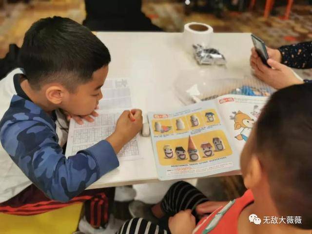 不过玩了一个多小时,娃也有点累了,回到座位上,大先做个数独,小后看个故事,俩人再吃个饭,又有精神了,接着玩。