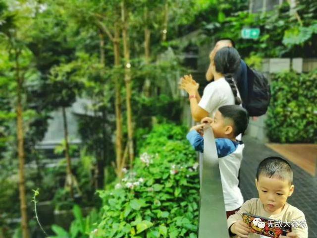瀑布中心区域被打造成一个热带雨林状,空气温润,植被茂郁,环装的区域都是休息座椅。如果不是带着俩娃,我们可以一直在这坐着发呆!