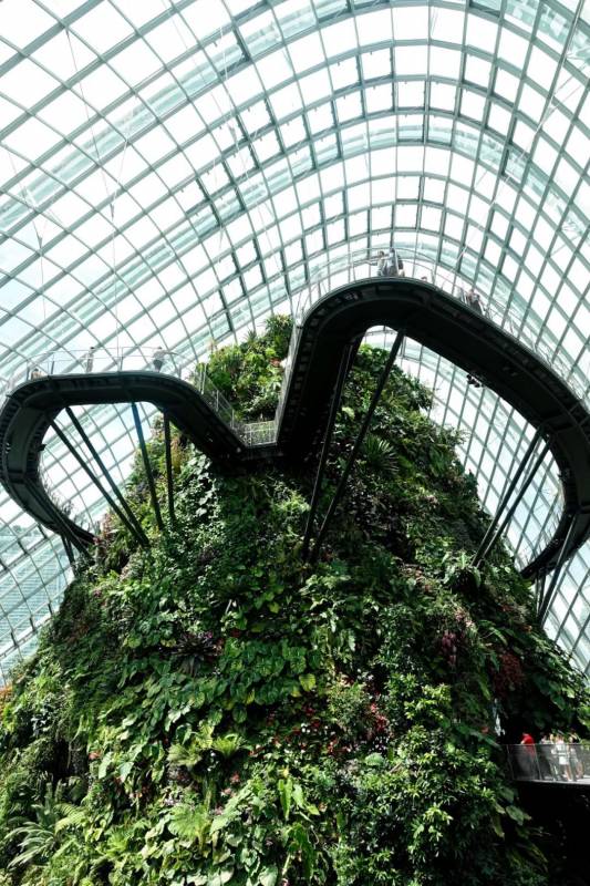 新加坡有着花园城市的美誉,滨海湾花园是其中一个必去的景点。花园大部分区域是免费的,可以看到新加坡特有的擎天大树(一种人工设计的树状花园),其中两个植物冷室的设计独具匠心,一个以不同大洲的植物分区展示,另一个则有35米高的人工假山和高空行走通道。最重要是空调比较冷,隔绝新加坡炎热的天气。