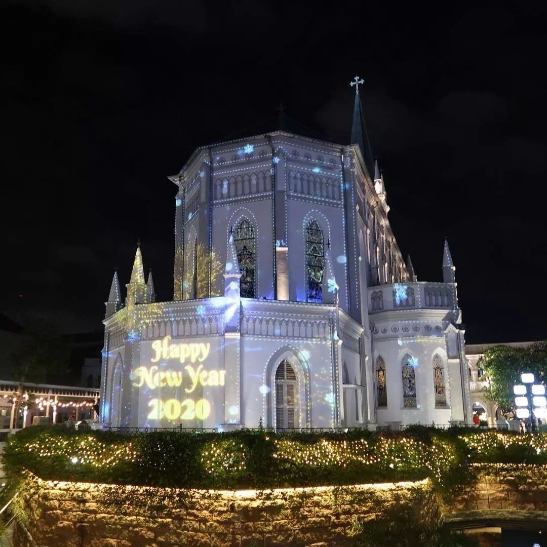 庄严的教堂搭配上中国风的庆祝活动,