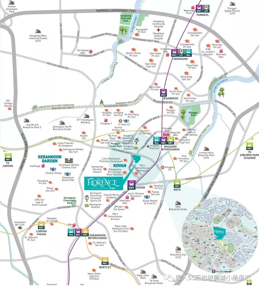 此公寓位于新加坡东北部,最靠近的地铁站为高文和后港。(步行到未来跨岛线-后港站5分钟)