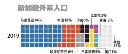 新加坡外来人口来自这些国家: 马来西亚 44% 中国大陆地区 18%(约38.88万人) 印度尼西亚 6.4% 印度 5.9% 巴基斯坦 5.1% 中国港澳地区 3.3% 和孟加拉 3.2% 外来人口,包括新移民公民、永久居民,工作准证持有者及家属、留学生等。过去30年,新加坡的中国人一直保持在18%左右。联合国数据显示,从1990年至今30年,新加坡外来人口总数已增长了两倍,从原来的72.7万人,增加到了216万人。