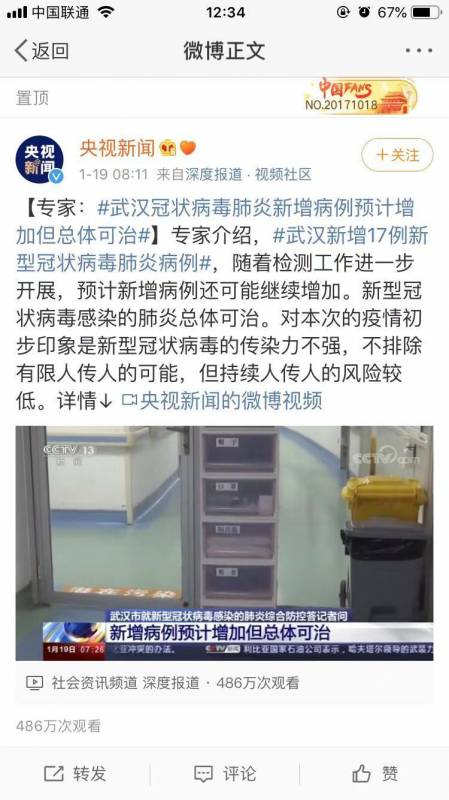 2020年1月18日0—24时,治愈出院5例,新增病例59例,死亡1例;1月19日0—22时,治愈出院1例,新增病例77例。