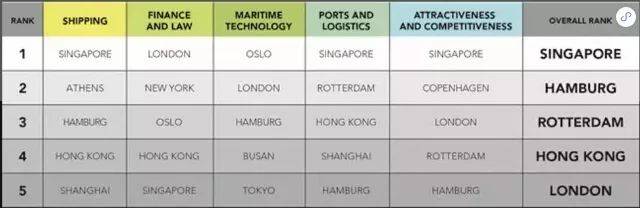 排名综合了全球航运、海事科技、金融和法律、港口与物流,以及城市的吸引力与竞争力五个方面评比,新加坡在其中三项中得分最高,总评分也排在了第一!这已经是新加坡连续第四次夺魁!