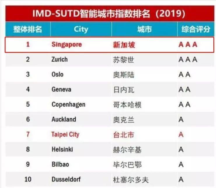 瑞士洛桑国际管理发展学院(IMD)和新加坡科技设计大学公布首份“智能城市指数”调查(Smart City Index),新加坡因在多个方面得分最高夺得榜首,第二名及第三名则分别是瑞士苏黎世和挪威首都奥斯陆。