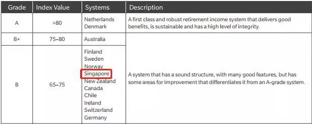 2019年10月21日,墨尔本美世全球养老金指数报告公布了排名,新加坡的公积金(CPF)制度再次被评选为亚洲最佳退休储蓄机制,位列全球第七,整体指数得分为70.8,略高于去年的70.4,被评为B级。仅次于荷兰、丹麦、澳大利亚这些闻名世界的高福利国家!