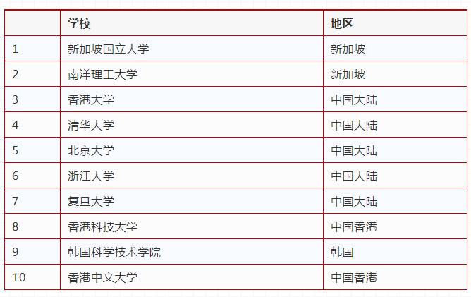 QS亚洲大学排名根据学术声誉、雇主声誉、师生比例、研究引用率、国际化作为评分标准,公布了2020年亚洲大学排名,新加坡国立大学(NUS),稳居亚洲第1的位置。南洋理工大学,紧随其后,排名亚洲第2。