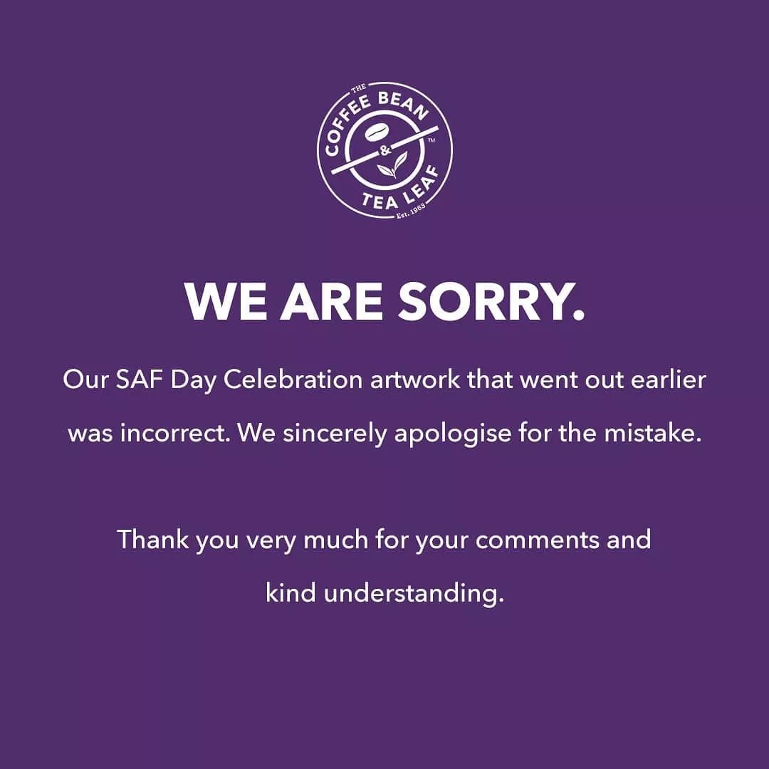 之后,Coffee Bean立刻撤下了广告海报并发布道歉声明: