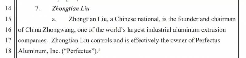 Wang Zhijie这个人不一般,通过一份来自2017年9月加州地方法院的一则公开文件可知,她其实是Zhongtian Liu的妻子,Zhongtian Liu又是谁呢?是忠旺集团老板刘忠田,其拥有集团74%的股权,身价高达240亿元。