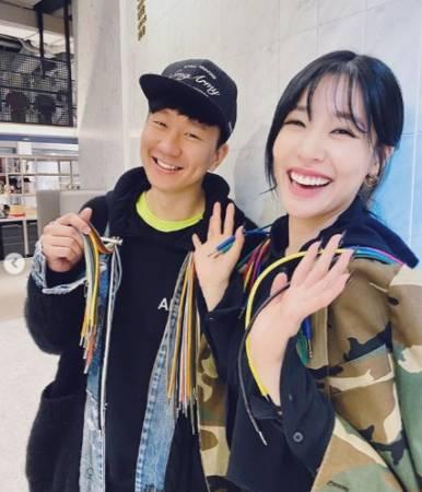 他前天在IG晒出几张和Tiffany的合照,两人在林俊杰成立的音乐工作室“JFJ Productions”标志前面拍照。彼此相当有默契,都穿着全身黑以及黑色靴子,外套上面也都有七彩的流苏线条,不说还以为两人是穿情侣装。