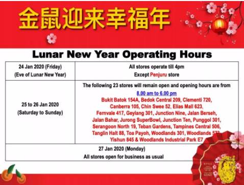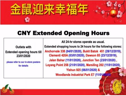 FairPrice在1月10日便已经公布了2020年春节营业时间。