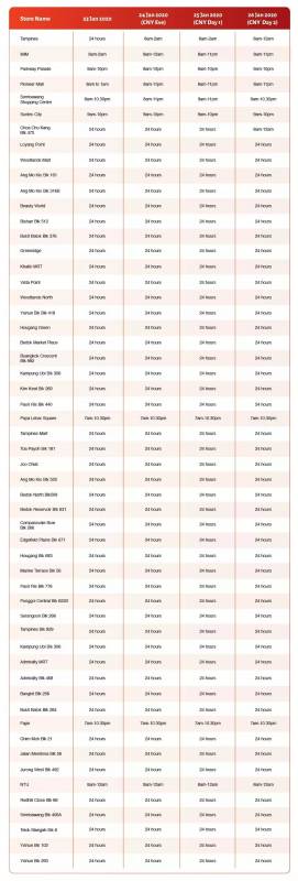 除夕当天,除了Penjuru分店,所有昇菘超市将会营业到下午4点。
