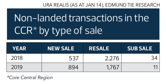 Tan指出,去年,CCR新售出的非有地住宅的平均价格为每平方英尺$2,950,比转售单位的平均成交价格高出45%,后者在每平方英尺$2,037左右徘徊。 2018年,在CCR的新物业和转售物业之间的价格差距为31%,新物业的平均售价为每平方英尺$2,560,而转售物业的平均售价为每平方英尺$1,950。